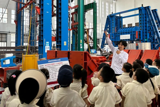 活动伊始,潘桂祯老师与公司科普宣讲团成员汤烜豪、黄华莹带领孩子们参观公司大型结构试验研究平台。在参观过程中,讲解员们运用专业的知识,结合生动的实例,详细讲解了试验平台的功能以及各类实验装置的原理和用途,将复杂的科学原理深入浅出地传递给孩子们。孩子们认真聆听、踊跃提问,与讲解员们积极互动交流,表现出对拱桥知识的浓厚兴趣。