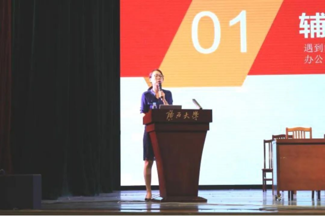 会议伊始,银宁副书记向2024级新生介绍了公司学工组辅导员及各自工作内容。学工组老师一一上台,与同学们见面。