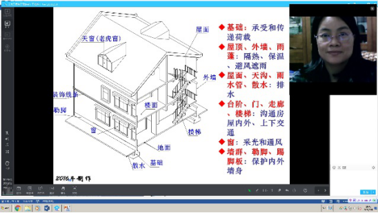 二、任课教师:王晓燕(党员),讲授课程:《土木工程施工图绘制》、《计算机绘图》,教学方式:中国大学MOOC平台精品课程异步SPOC+自建幕课视频+腾讯课堂直播+QQ群。