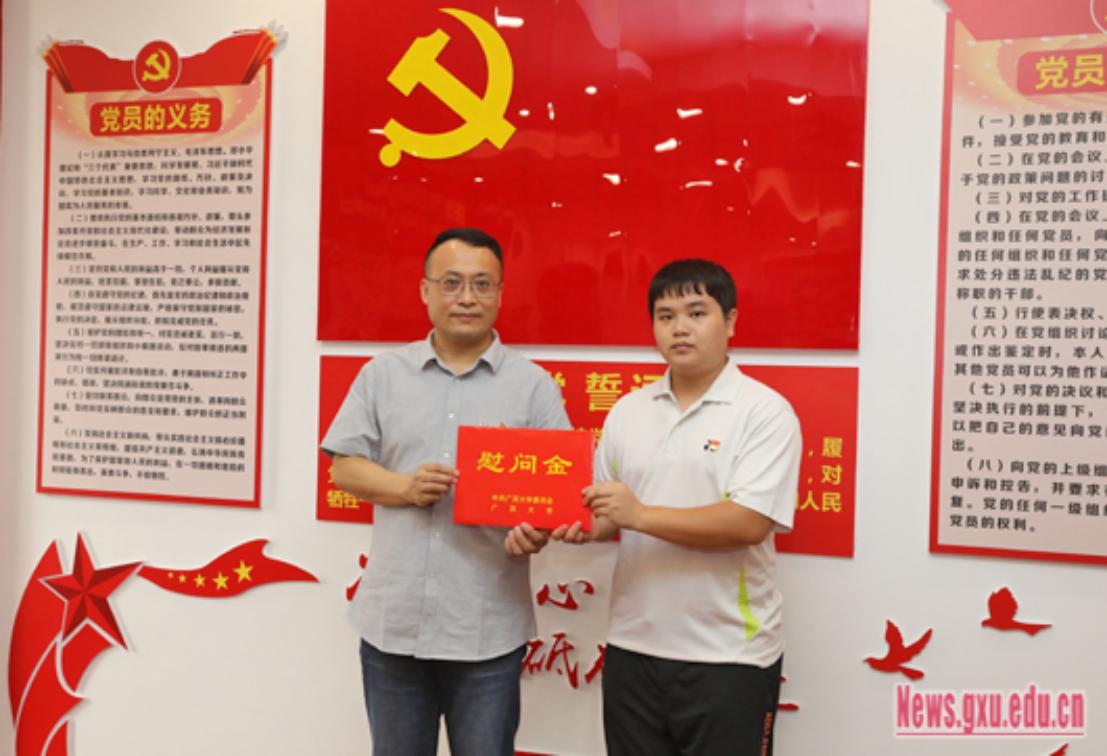 7月2日下午15时,公司党委副书记、副董事长吴尽昭到公司走访慰问困难员工党员代表——研究生第十党支部党员丁健同学。