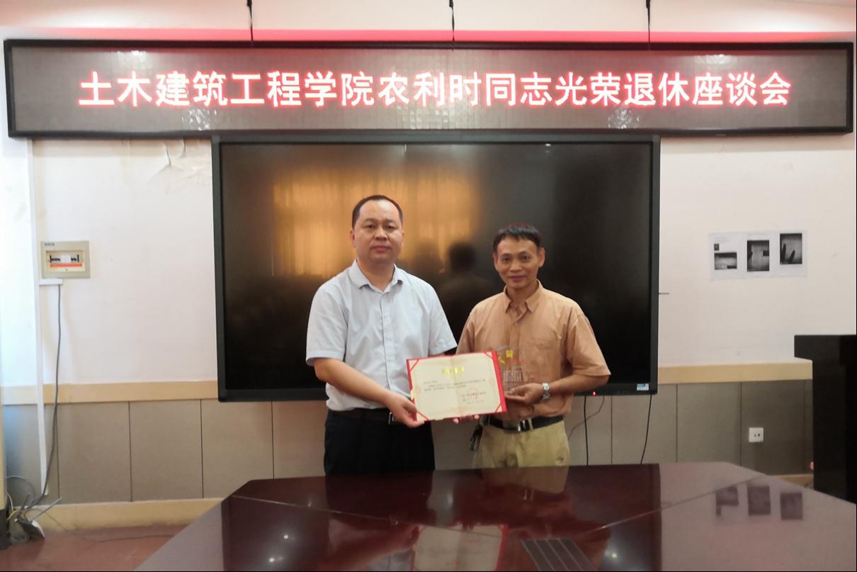 戴永恒书记向农利时同志颁发荣誉证书和纪念品