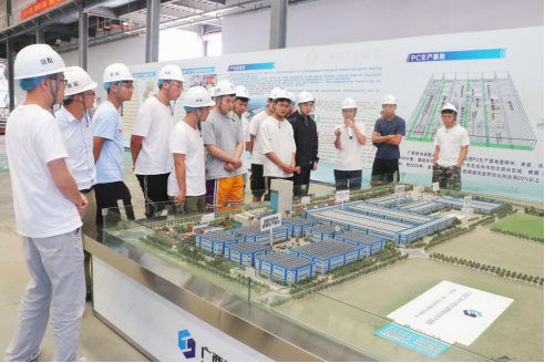 在PC混凝土预制生产基地,工作人员通过展示产业园沙盘、PC构件样品和生产线,详细介绍了产业园建设规划,以及PC构件的产品特点和生产情况。秦经理介绍,和传统的建筑行业相比,装配式建筑节省了人工、节水、节材、节地,做到了“四节-环保”,减少了传统建筑行业中PM2.5的排放量,更绿色更环保。
