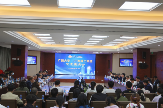 会上,公司82届员工、广西建工集团公司总经理罗涛对公司师生的到来表示热烈欢迎,并以学长身份,回忆及分享了自己在西大的求学经历及工作心得。他介绍了集团公司从1953年成立以来的改革发展历程,各个时期企业的业务布局、人才建设、资质情况以及混改后企业取得的新成效、新变化。广西建工以建筑施工与安装为主业,同时积极拓展房地产、建筑机械制造与租赁、建材销售、基础设施投资、国际业务、矿业等业务板块,形成一业为主、多元并进的发展格局,目前各业务板块发展势头良好,有些板块处在行业领先位置。混改一年来,广西建工的发展动力活力得到充分释放,营业收入和利润总额等主要指标快速增长,实现了平稳健康发展。迈向“十四五”新征程,广西建工正以前所未有的信心,全面开展五年发展规划和三年行动计划,力争到2025年末,实现营业收入2500亿元以上、利税总额126亿元以上,力争成为广西国有企业深化改革的标杆。他表示,此次交流座谈暨“两个基地”的揭牌,拉开了双方校企合作、产教融合的新序幕,开启了产、学、研、用合作新征程,希望双方不断完善交流机制,深化合作平台,不断加深合作的深度广度。