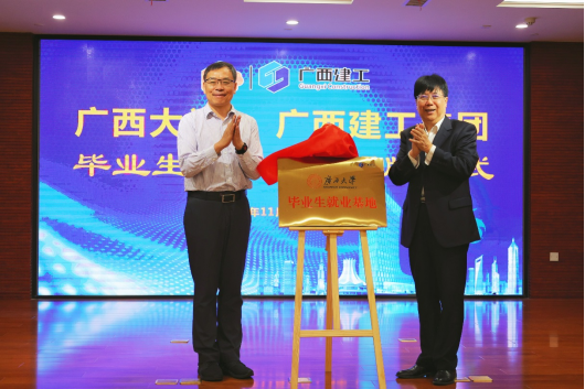 随后,宾客双方在广西建工大厦1号楼2301会议室举行校企合作产教融合交流座谈会暨校企“毕业生就业基地”及“产学研实践基地”揭牌仪式。