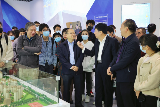 下午3时,师生代表首先参观建工集团企业文化馆和“数字建工”指挥中心,了解了集团公司从1953年成立以来的改革发展历程,各时期企业的业务布局、人才建设等情况,感受了新基建技术、智慧工地管理平台、信息化管理新模式的科技气息。