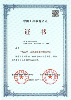 近日,我院水利水电工程专业获得了中国工程教育专业认证协会颁发的中国工程教育认证证书,认证有效期为6年。