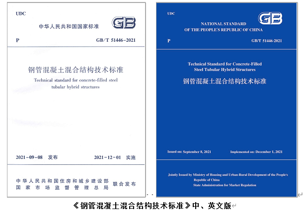 经中华人民共和国住房和城乡建设部批准,由公司党委常委、副董事长韩林海教授与全国工程勘察设计大师、中国建筑标准设计研究院总工程师郁银泉教授级高级工程师主持编制,来自29个单位的专家学者参加编制的国家标准《钢管混凝土混合结构技术标准》GB/T 51446-2021自2021年12月1日起实施,其英文版也于2022年3月出版发行。
