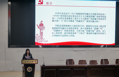 最后,陈正书记在总结讲话中指出,“清廉公司”建设是落实全面从严治党主体责任的重要内容,是落实“清廉广西”和“清廉西大”建设任务的重要组成部分。希望全院教职员工以实际行动积极投入“清廉公司”建设之中,促使“清廉公司”建设取得更多制度性的成果和更大的治理成效,为打赢一流团队建设的保卫战提供切实的保障力量。