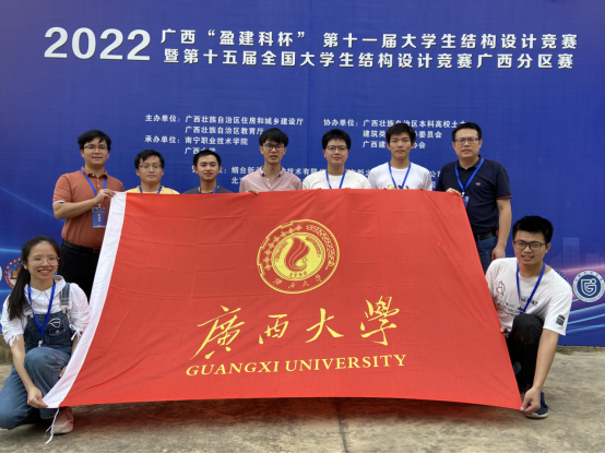 5月19日—21日,在南宁职业技术公司举行的“广西第十一届老员工结构设计竞赛暨第十五届全国老员工结构设计竞赛广西分区赛”中,公司参赛选手取得好成绩。土木工程专业2021级本科生黄志林、韦晓玲、刘汉生的“拉不断”队获得大赛二等奖。