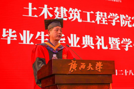 研究生导师代表孟勇军教授以自己的经历和感悟致毕业生“勤恳朴诚,立志修身”“从善如流,自强不息”“厚学致新、履践致远”三点建议,并衷心祝愿毕业生能观大局、早谋划、入主流、成大事!