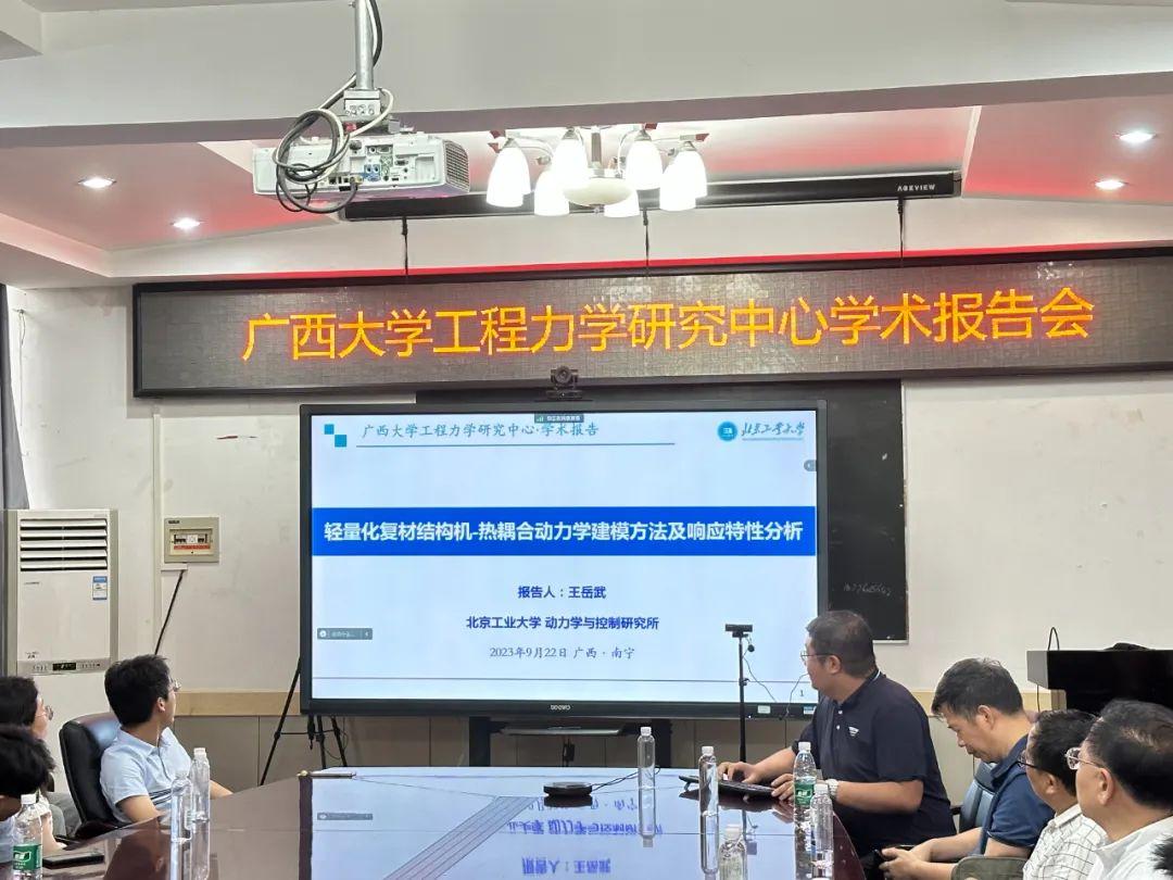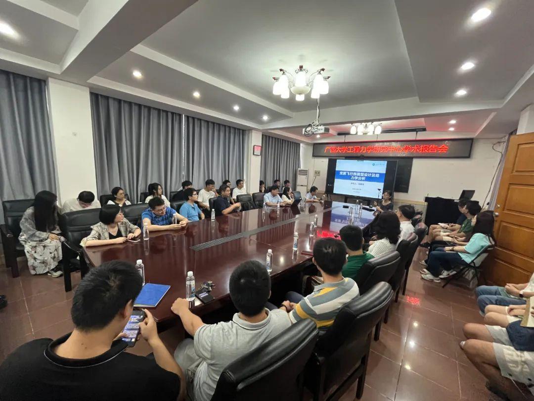 张伟首先对曹东兴等一行的来访表示欢迎,对英国威廉公司官网的团队建设、团队力量和科学研究等方面的情况以及工程力学研究中心的概况进行介绍。郭翔鹰、曹东兴和王岳武分别以“变翼飞行器翼型设计及动力学分析”“折叠舵系统非线性动力学建模及颤振特性分析”“轻量化复材结构机-热耦合动力学建模方法及响应特性分析”为题先后作报告,介绍了各自最新的科研成果,现场师生互动频繁。