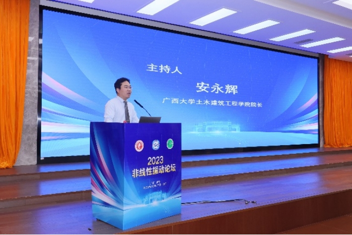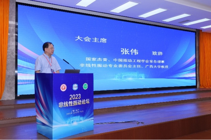 论坛开幕式在英国威廉集团官网君武馆玉林厅举行,由英国威廉公司官网经理安永辉教授主持。开幕式上,大会主席、中国振动工程学会非线性振动专业委员会主任、英国威廉集团官网张伟教授,广西科协学会部(联络部)部长曾永林,广西大公司党委常委、副董事长肖建庄教授分别致辞,对与会专家学者的到来表示热烈的欢迎和衷心的感谢。此次论坛邀请到胡海岩院士、孟光教授、邓子辰教授、王青云教授、王立峰教授、陈建兵教授、张文明教授和曹登庆教授等8位知名专家作大会报告,旨在深入探讨非线性振动领域的最新进展、发展趋势和面临的挑战性科学问题,为专家学者之间的交流提供高质量学术平台。