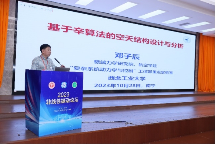 10月28日上午,胡海岩院士、邓子辰教授和张文明教授分别作了题为“数据驱动的非线性颤振预报”“基于辛算法的空天结构设计与分析”和“超高频MEMS芯片全场振动测量理论及应用技术”的大会报告。胡海岩院士阐述了跨声速飞行器颤振预报和控制的关键科学问题和难点,并介绍如何将力学知识嵌入到数据驱动技术中,以建立物理意义明显、低阶次的非线性气动力模型,准确预报了飞行器的极限环颤振。邓子辰教授阐述了辛算法的核心思想及基本特征,并介绍了辛算法解决空天结构非线性动力学问题的最新进展。张文明教授介绍了利用飞秒激光作为频闪光源来探测超高频振动的新技术,并基于此技术开展了一系列超高频谐振器的制备和动态成像测量。