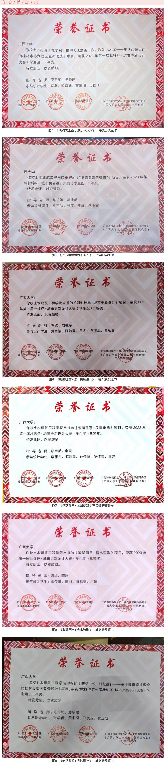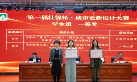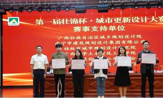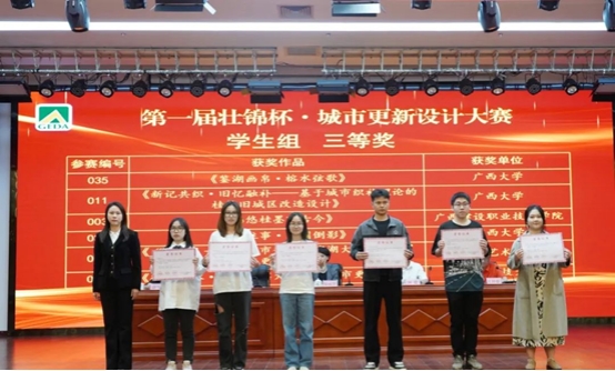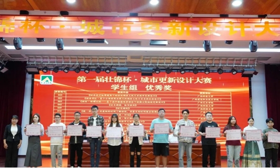 10月12日下午,第一届壮锦杯城市更新设计大赛总结大会暨颁奖仪式于南宁市五象建设大酒店召开。由公司陈筠婷、李欣、廖宇航、谢华、熊伟等校内导师及李霞、刘峻宇等校外导师指导,以19级建筑学本科生和22级建筑学硕士生为主体组建代表队,基于大四的建筑群体及城市设计课程以及研究生的城市设计课程的教学内容积极备赛,历经一个多月的努力拼搏,最终不负众望,取得了优异成绩,共斩获一等奖1项,二等奖2项,三等奖3项,优秀奖4项。