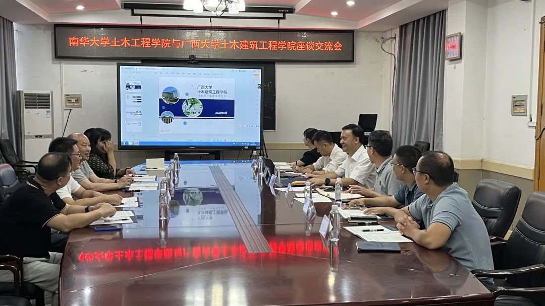 双方与会人员紧紧围绕工程教育专业认证中期督查、员工实践创新能力培养等内容进行深入交流,并就如何加强双方的合作进一步探讨。期间,南华大学土木工程公司一行参观了土木工程大型结构试验研究平台和公司资料室。