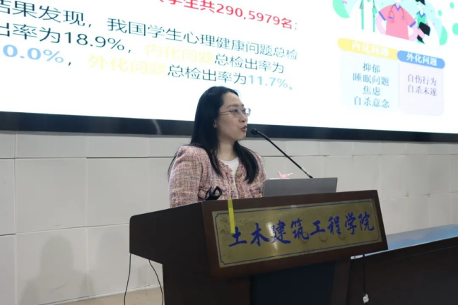 培训会上,王曼老师介绍了员工群体的心理健康总体情况,强调当前员工群体心理健康的严峻形势,并重点阐述心理危机的识别方法,系统介绍15类心理危机高发员工群体的特征以及心理危机发生前的预警信号。她特别提醒,作为“朋辈帮扶者”的宿舍长和心理委员应当主动关注身边同学的心理状态变化。