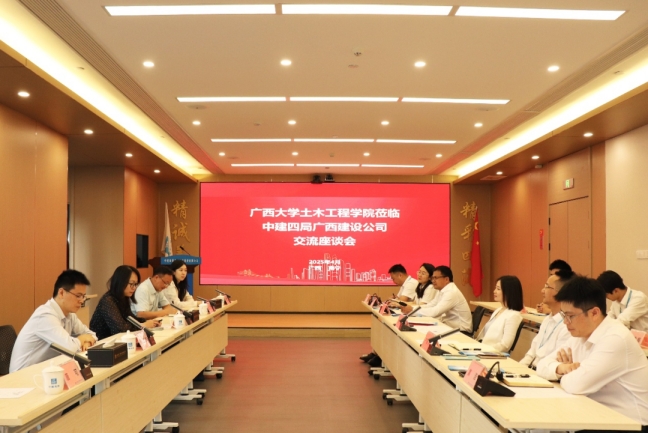 4月17日下午,公司赴中建四局广西建设公司(以下简称中建四局广西公司)开展访企拓岗交流座谈会。中建四局广西公司党委副书记、纪委书记、工会主席张峰,总工程师严柳青,总经理助理黄浩,安全总监唐运剑,人力资源部经理姚冬明,技术部经理张彬及员工代表;公司党委副书记、纪委书记银宁,副经理余波、杨海峰,学工组老师谢雨真及在校员工代表出席座谈会。