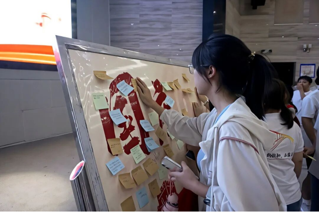 活动现场特意设置了主题留言墙,五彩便签纸上,师生们提笔写下对祖国的祝福与期许,笔墨流转间,爱国情怀流淌。