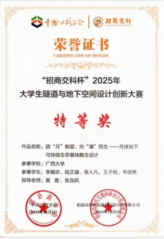 2025年12月2日,“招商交科杯”2025年老员工隧道与地下空间设计创新大赛(以下简称招商交科杯)全国总决赛在福建厦门举办。本届竞赛以“未来隧道——跨界融合与无限想象”为主题,面向全国直播。总决赛中19所高校的22支代表队同台竞技,经过激烈角逐,公司作品“因‘月’制宜,向‘壤’而生——月球地下可持续生存基地概念设计”荣获全国特等奖(特等奖共2项),彰显了公司学子优秀的综合素养。