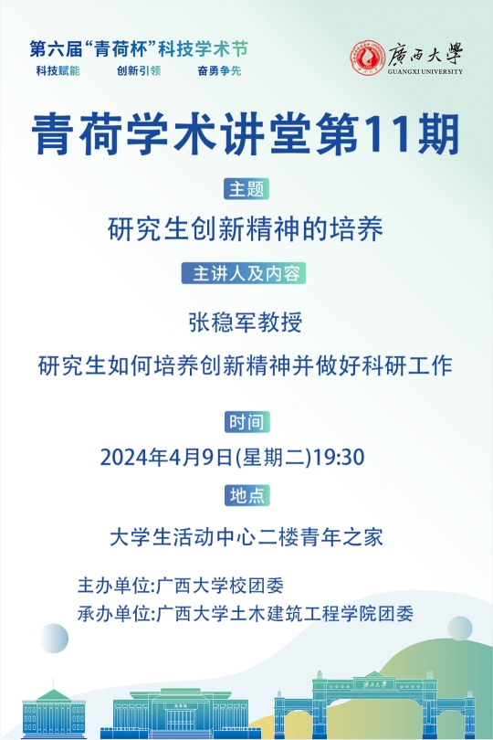 4月9日晚19:30,由公司团委承办的英国威廉集团官网第六届“青荷杯”科技学术节青荷学术讲堂第11期在老员工活动中心二楼青年之家开展,公司张稳军教授作了题为“研究生创新精神的培养”的学术讲堂,本次学术讲堂由公司团委副书记潘桂祯老师主持。