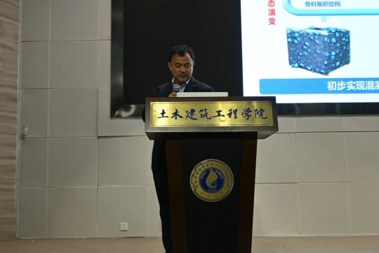 会议伊始,蒋金洋教授作了题为“混凝土的多目标性能预测与智能设计”的学术报告,蒋教授从“西部大开发”战略等边疆建设过程中混凝土的严酷服役条件出发,进而引出传统设计方法无法容纳混凝土海量数据体系和复杂交互机制,并聚焦于解决对混凝土纳﹣微﹣细观结构认识不清,难以量化混凝土多尺度结构﹣性能关联机制,混凝土智能设计数据融合机制不明确等科学问题,在此基础上开展了多尺度多相混凝土模型的研究。针对混凝土多目标性能预测的三个科学问题,蒋教授带领团队开展了一系列研究,解码了混凝土从纳观到细观多尺度结构,量化了力学、耐久和服役寿命等多目标性能,创建了混凝土高通量大数据库,建立了混凝土逆向设计智能方法。为混凝土设计领域带来了新的突破。