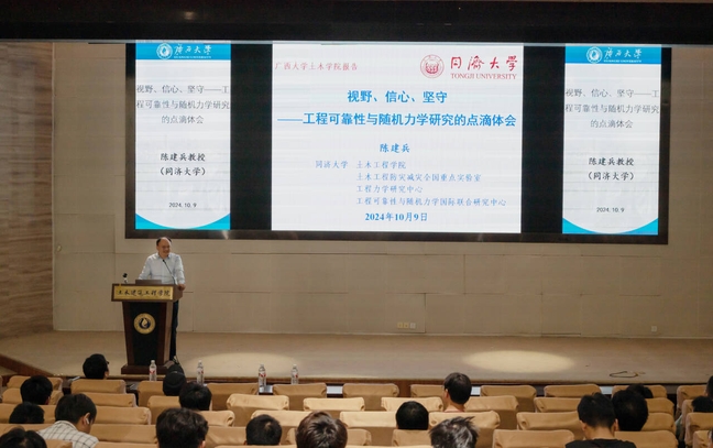 10月9日下午,同济大学陈建兵教授在公司大型结构试验研究平台第六报告厅作了题为“视野、信心、坚守---工程可靠性与随机力学研究的点滴体会”的学术报告,报告会由公司罗丹旎副教授主持。