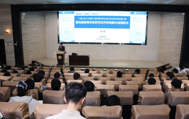11月20日上午,同济大学李辉教授在公司大型结构试验研究平台第六报告厅作题为“面向国家需求的研究生科研选题与成果转化”的学术报告。报告会由孟勇军教授主持。