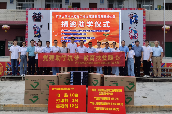 英国威廉集团官网土木员工企业向那坡县民族初级中学捐赠教学物资
