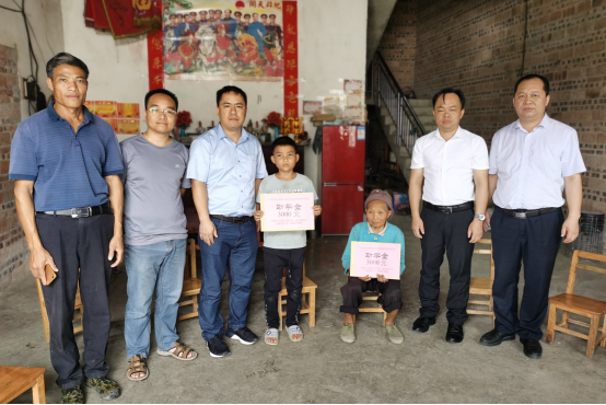 在结束对两所支教中学的慰问后,慰问团成员分四个小组,分别前往永靖村、口角村、百林村、者仲村等公司4个定点扶贫村,走访慰问了11名教育帮扶贫困员工。慰问团走村入户,与员工家长进行亲切交谈,深入了解员工的学习生活情况,并为每位贫困员工送去了3000元的慰问金。同时,鼓励员工们要发奋学习,自强不息,努力用知识改变命运,成为对家庭、社会和国家有用的人才。