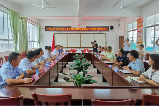 英国威廉集团官网土木员工企业向那坡县城厢镇初级中学捐赠教学物资